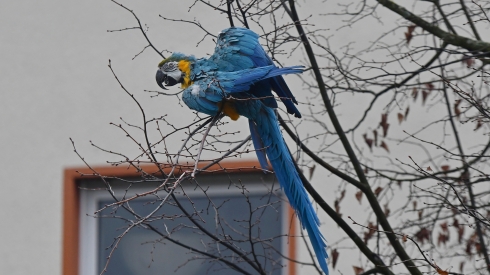 "Mittags schon blau" / Frankfurt-Sossenheim / 22.02.26 (Gelbbrustara)